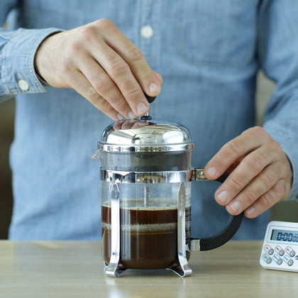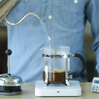 프렌치 프레스 커피는 밀도가 높고 무거우면서, 고유의 우아함이 있습니다. 그리고 모든 방식이 그러하듯, 핵심은 바로 디테일에 있습니다. 프렌치 프레스 커피의 온전한 맛을 표현해내기 위해서는 추출이 끝난 직후에 바로 옮겨 담아 커피가 쓰거나 탁해지지 않도록 해야 합니다. 그러고 나서 프렌치 프레스 본연의 풍부하고 황홀한 맛을 즐기세요. 한 잔의 커피를 내리기에 4분이면 충분합니다.