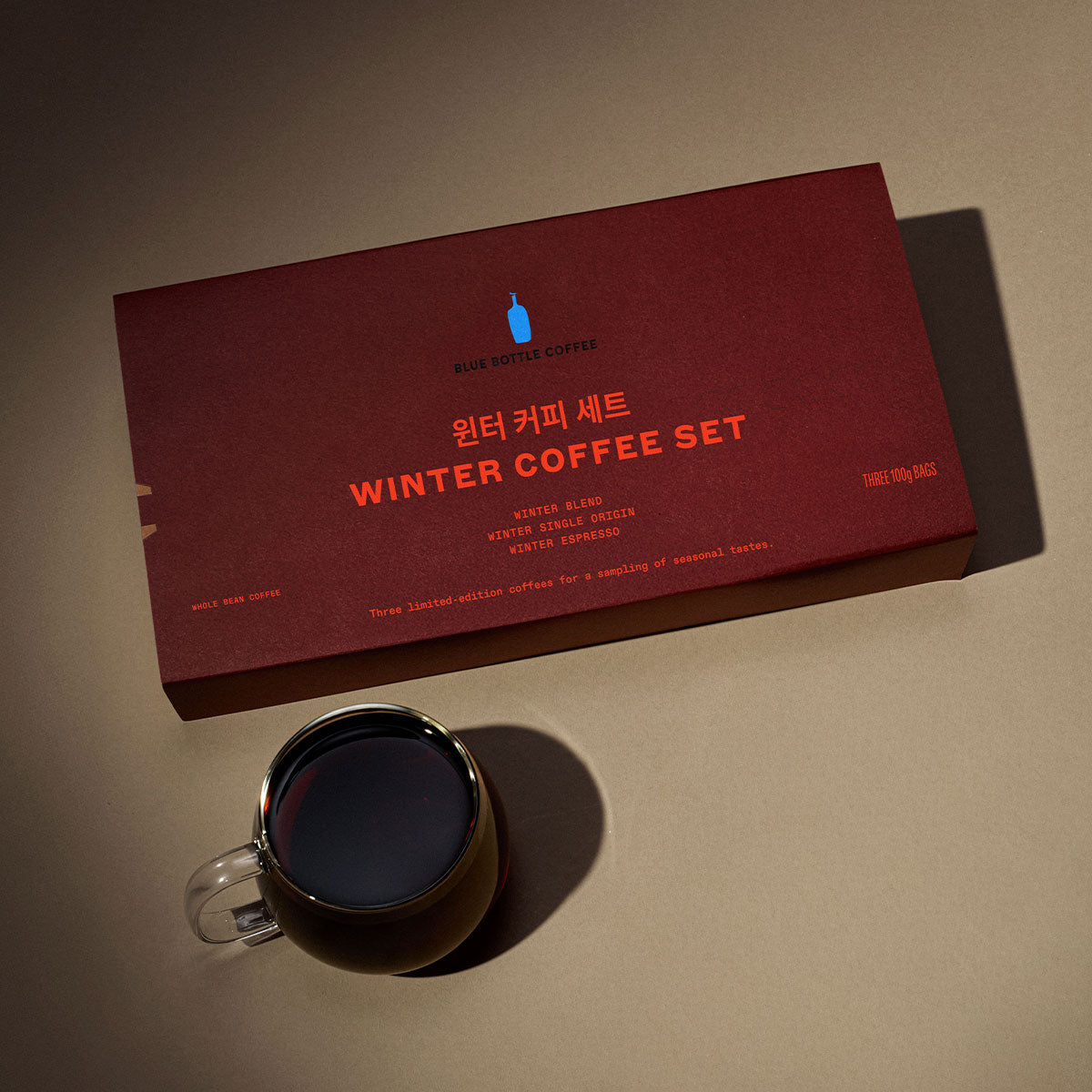 이번 겨울 시즌 블루보틀을 대표하는 세 가지 커피를 윈터 커피 세트로 만나보세요. 에티오피아 게뎁 메타드 내추럴을 중심으로, 멕시코 라스 코토라스의 초콜릿 같은 달콤함을 더해 균형 잡힌 풍미를 완성한 윈터 블렌드부터, 전통적인 내추럴 프로세싱으로 가공되어 풍부한 과일 향과 잼 같은 질감, 그리고 복합적인 플로럴 향이 생동감 있게 피어나는 싱글 오리진, 그리고 사랑받는 헤이즈 밸리에 한층 깊고 그윽한 과일의 생동감을 더한 윈터 에스프레소까지. 한 잔마다 다른 겨울의 표정을 담아냅니다.
