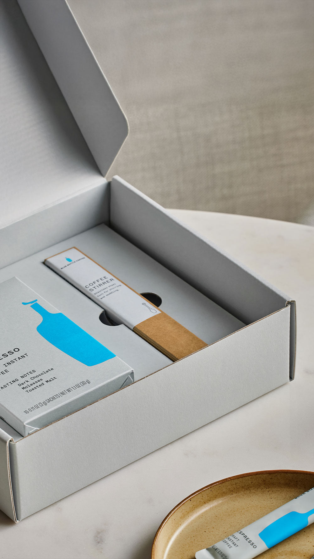 개별 포장된 인스턴트 커피 에스프레소는 스페셜티 등급 원두를 정성스럽게 동결 건조해 반짝이는 크리스탈 입자 속에 블루보틀의 기술과 정성을 그대로 담았습니다. 이 경험을 완성하는 무광 스테인리스 스틸 커피 스터러는 빛의 각도에 따라 은은하게 반짝이며 감각적인 무드를 더해주고, 물이나 우유에 가볍게 저어주기만 해도 집에서도, 직장에서도, 여행지에서도 훌륭한 스페셜티 커피가 완성됩니다.