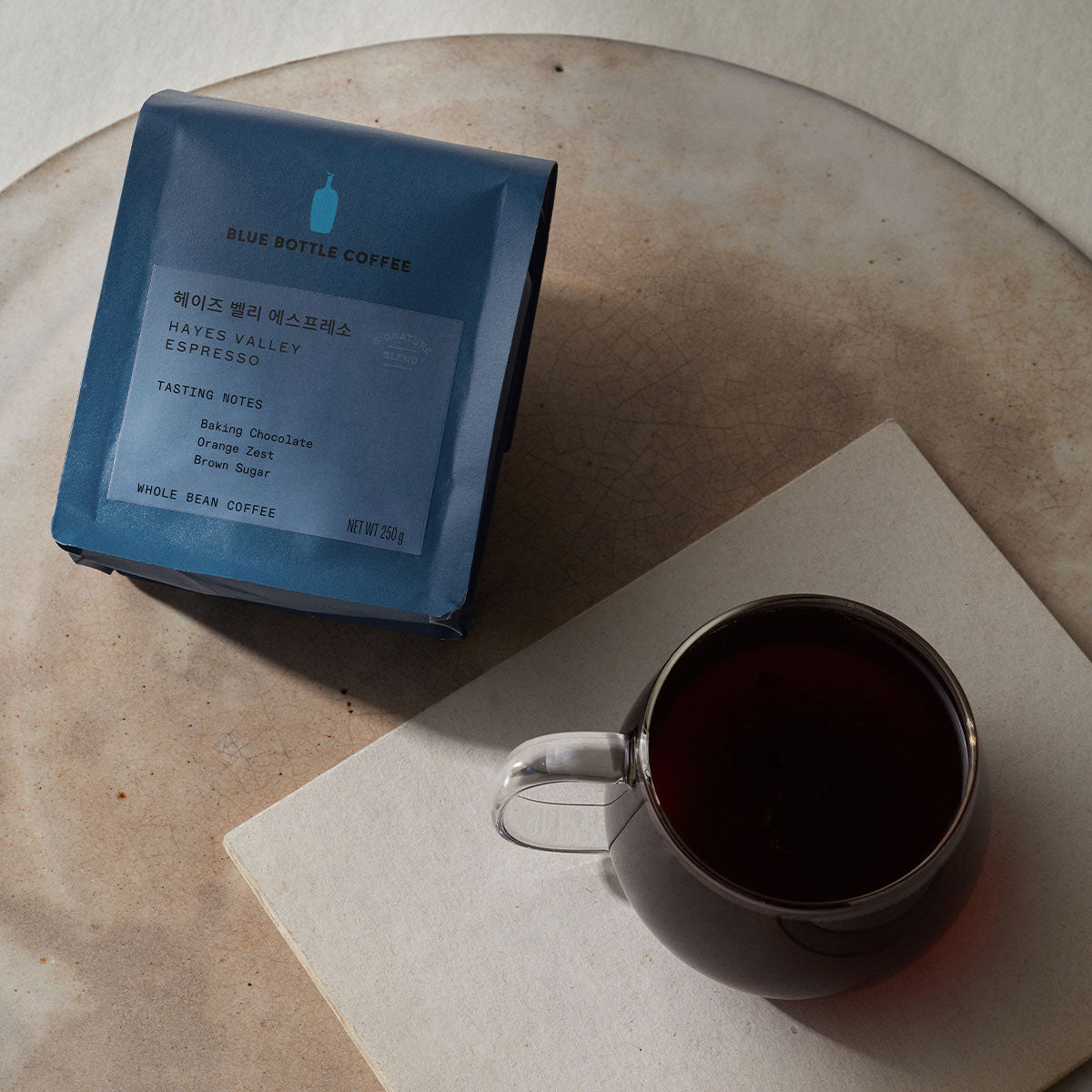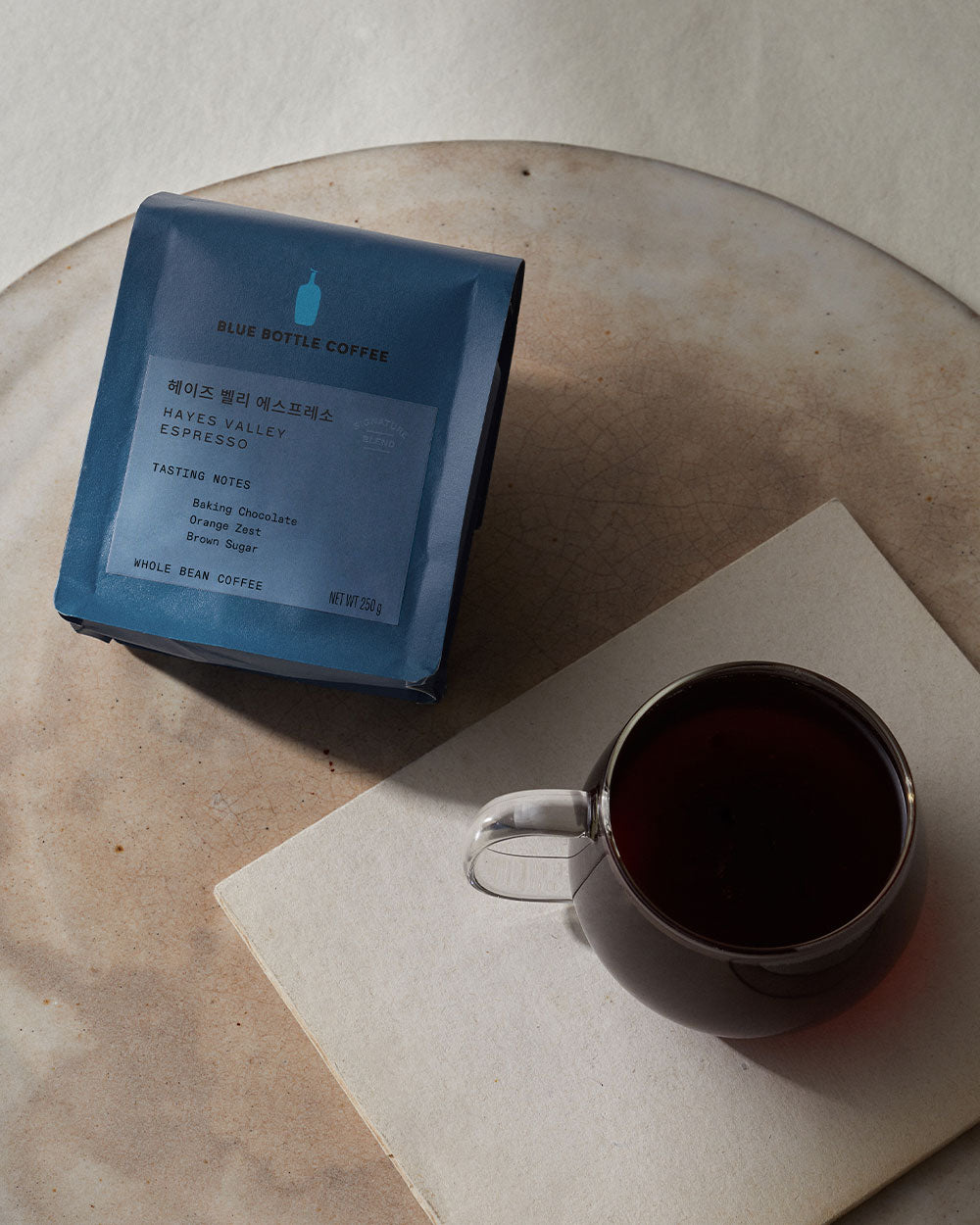 블루보틀에서 제공하는 에스프레소 중 가장 깊고 진하며, 헤이즈 벨리 에스프레소 블렌드에 대한 변함없는 애정은 블루보틀의 로스팅 방법과도 관련이 있습니다. 아메리카 대륙에서 온 커피를 느리고 낮은 온도에서 열을 가해 다크 로스트에 해당하는 지점까지 도달하게 합니다. 커피 로스팅 시간을 길게 하면 묵직한 바디감을 유지하면서도 강렬한 풍미와 최고의 단맛을 구현할 수 있습니다.